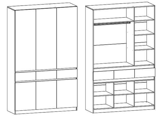 Трехстворчатый шкаф Евро (Террикон)